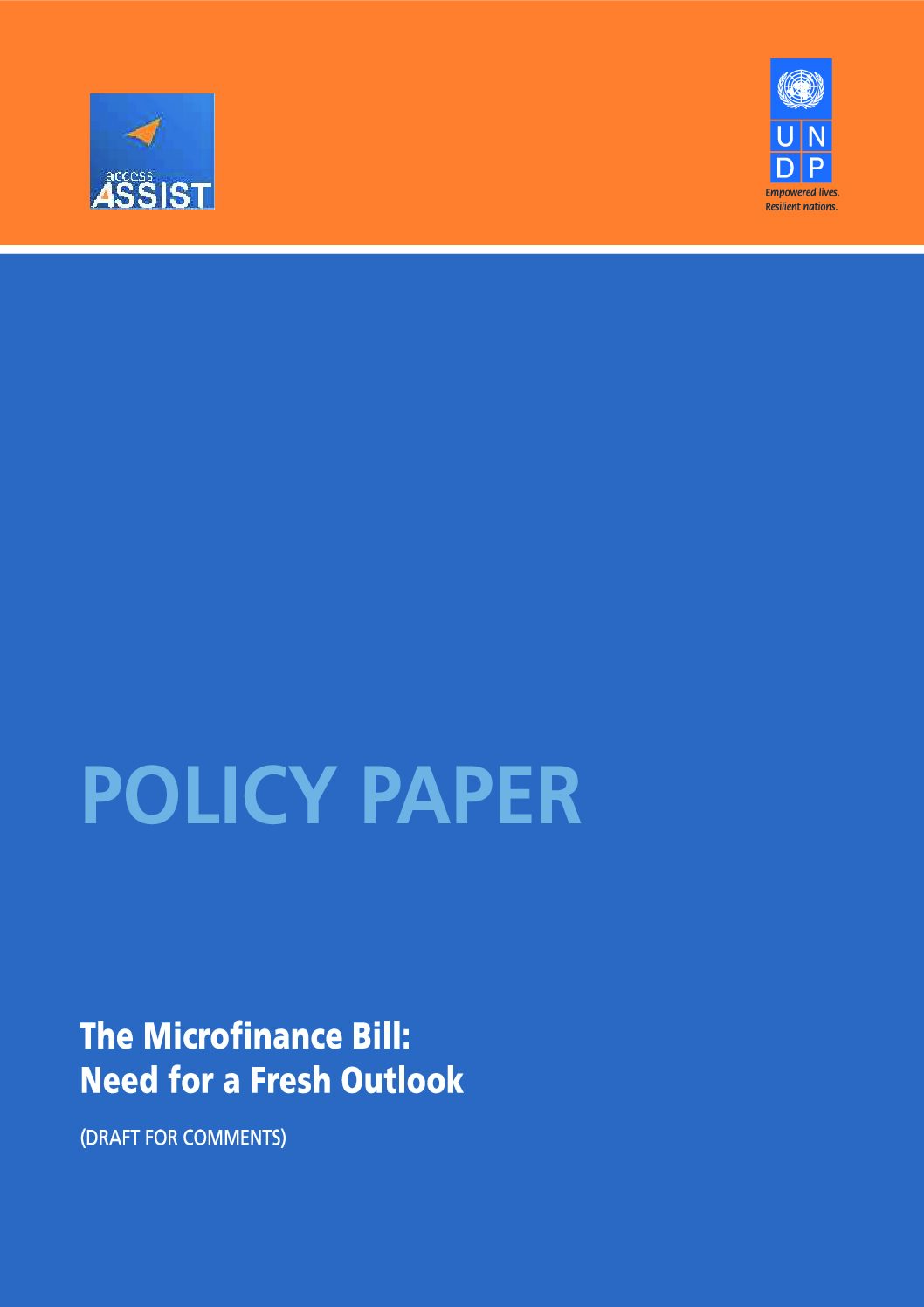 The Microfinance Bill: Need for a Fresh Outlook